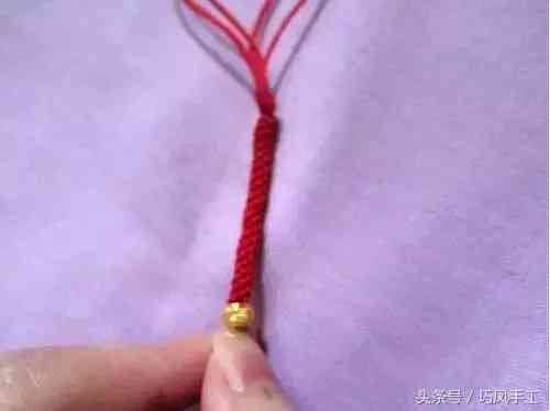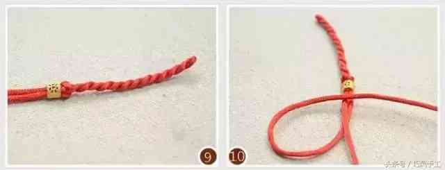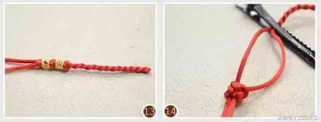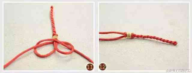 將兩根紅繩分開(kāi)纏繞打結(jié)后,準(zhǔn)備串連第二顆轉(zhuǎn)運(yùn)珠,如圖11、12所示