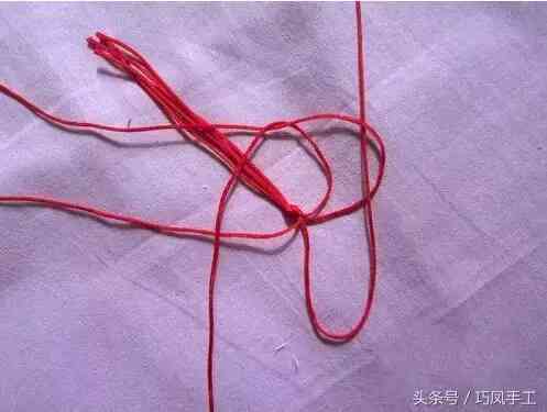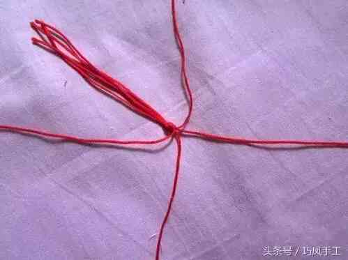 首先我們需要準(zhǔn)備好四條紅色的繩子,在距離線的一頭5-6厘米處打個(gè)結(jié)。