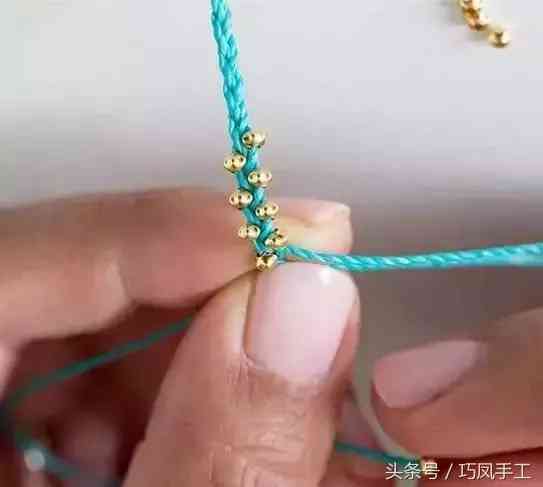 大約編好一段后,把金珠子穿上。