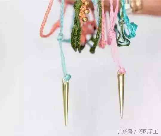 步驟13: 也可以在線頭末端處添加顆尖錐吊墜,打完滑結(jié)后,將手鏈的編織放松至可輕松佩戴的狀態(tài)后,在末端串入吊墜