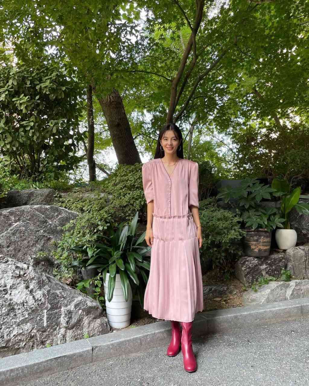 韓國女演員金成恩身穿Instantfunk連身裙。