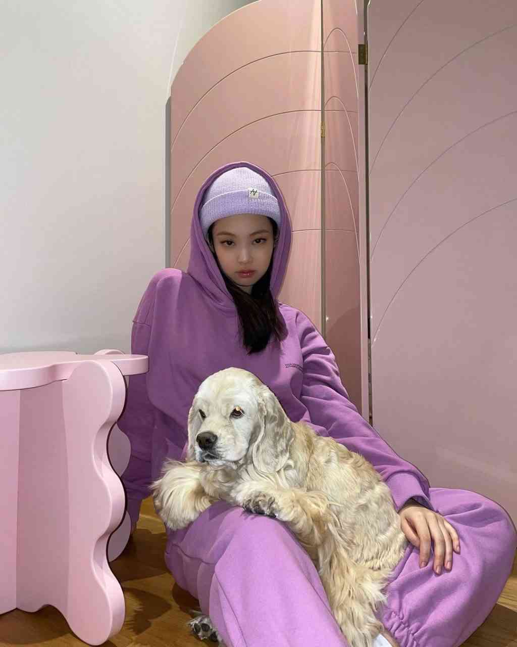 Jennie戴上Nieeh針織帽。