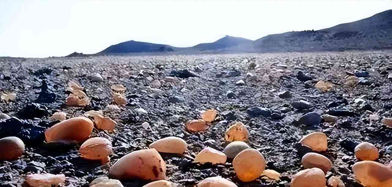 這片湖泊位于一片荒蕪的土地上,大約有六平方公里,是一個干燥的湖泊。湖泊底部到處都是瑪瑙,有的有拳頭大,有的有黃豆大,有的晶瑩剔透。這個瑪瑙湖到底是怎么來的?根據(jù)科學(xué)家們的研究,這里的玄武巖應(yīng)該是一千萬年以前的一次火山爆發(fā),我們都知道,這里的巖漿速度非??欤圆艜心敲炊嗟目障?,在加上巖漿中的熱量,讓它們充滿了能量,久而久之,就變成了一塊巨大的鉆石。