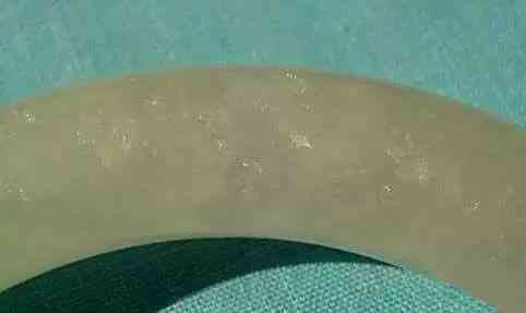 看圖16這個鐲子,看上去干干凈凈,結(jié)構(gòu)也不錯,白薯地,即便是用紅外光譜儀檢測,也沒有能夠發(fā)現(xiàn)異常(由于做B都是片料做的,所以,如果是B的話,鐲子的任何一個點用紅外做出來都是B)。但放大鏡下看了一圈,發(fā)現(xiàn)了局部的問題如下圖17:
