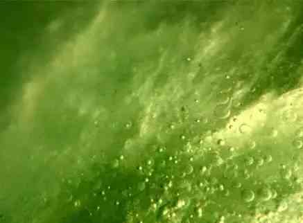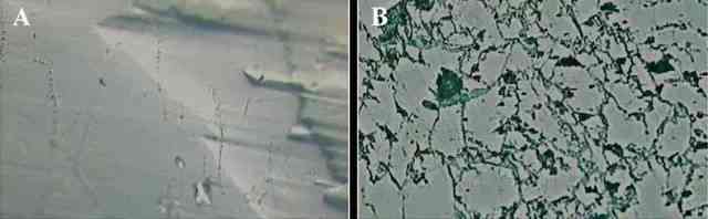 放大鏡下對比圖12:經(jīng)過硝酸、磷酸、雙氧水、NaOH、高分子聚合物等處理過的翡翠,其結(jié)構(gòu)上的變化完全可以用一個活人和一個被燒焦炭化的人來相提并論!