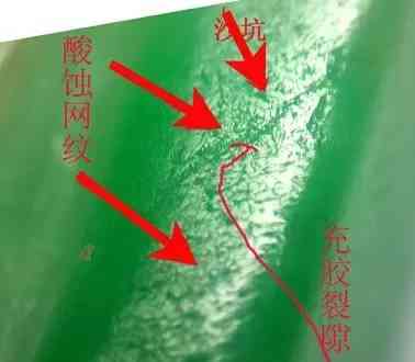 【鑒別2】 “桔皮效應(yīng)”及“酸蝕紋”