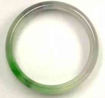 大家看上圖20綠色部分,猶如中國畫的手法,從濃到淡從有到無,過渡得幾乎讓人看不出從哪里開始有顏色!這個就是B的色根擴散,或者有人叫顏色發(fā)飄了。這是因為B貨里的膠把隔阻顏色的裂隙充填了,光線很容易在翡翠顆粒之間相互傳遞而少了裂隙面的反射!再注意這只鐲子有黑色部位。要知道,翡翠的黑往往是以點狀分布的,所以有蒼蠅屎的稱謂。大家可能認為B里面不會有臟色,所以做B貨的人就故意弄上黑色迷惑人,好在顏色有了擴散,否則肯定能迷惑更多的人。
