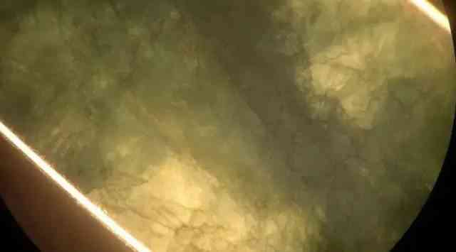 1、反射光:調(diào)整拋光翡翠制品,使表面反光,肉眼或10倍鏡下觀察翡翠表面反光部位。細致觀察會看到很多內(nèi)容,比如光澤特點、拋光平整、光滑程度等。