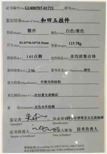 下圖為上海市3家國檢證書樣本:鑒定價位:出具證書——100元/小件1件(掛件、手鐲等;不出具證書幾十元);200~600元/件(大件、擺件類)