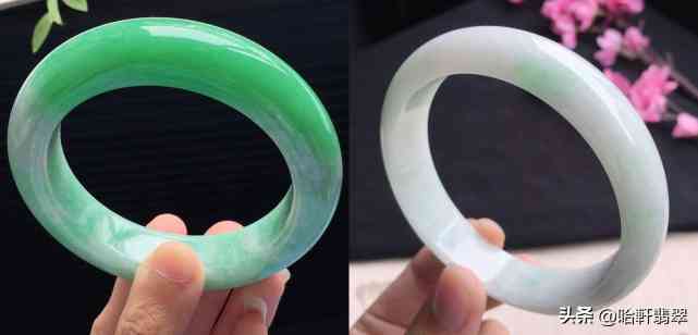 像左邊這只無色手鐲在大五價左右(7-9萬),右邊飄綠的手鐲則在小六價左右(10-30萬)。