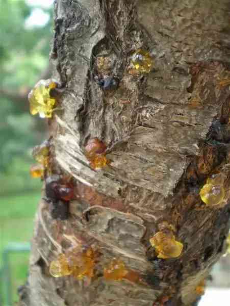 相信大家在生活中都看到過這樣的圖片,這些黃黃黏黏的東西叫樹膠,樹膠是從樹干傷口流出的。