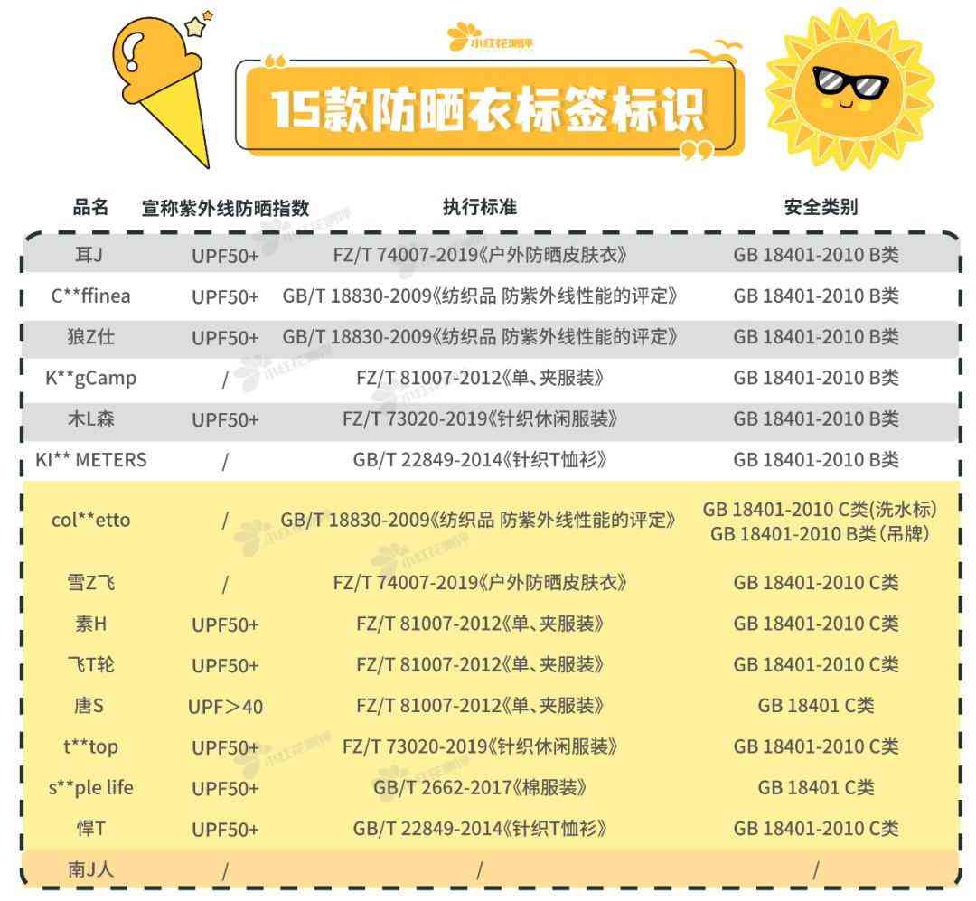 1.僅耳J 、C**ffinea、狼Z仕、col**etto、雪Z飛執(zhí)行了防曬衣相關(guān)標(biāo)準(zhǔn)。