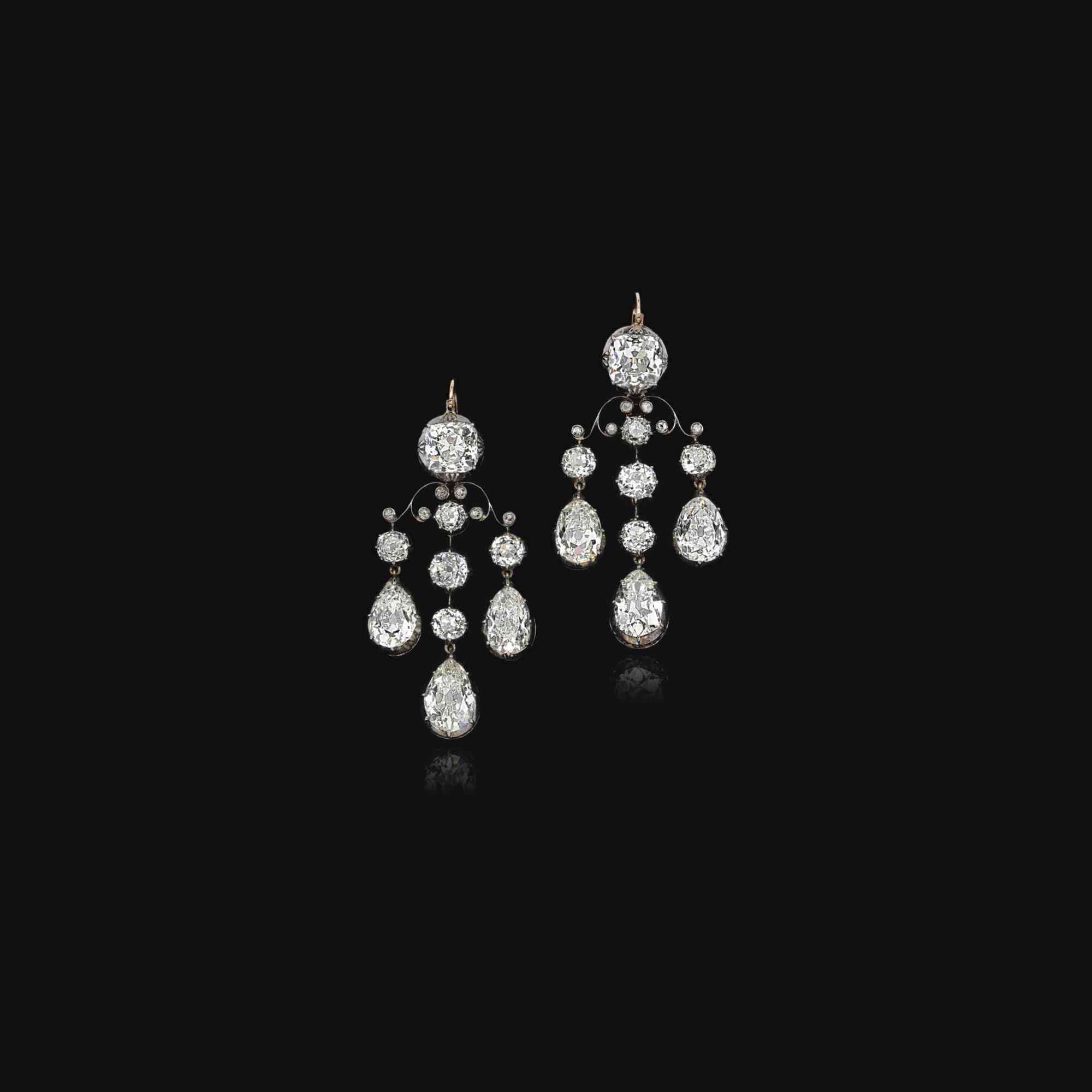 這是一對鉆石吊墜耳環(huán),采用了19世紀(jì)上半葉的吉蘭朵樣式。吉蘭朵的出現(xiàn)可以追溯到18 世紀(jì)的法國,這種款式先由一顆珠寶出發(fā),往下延伸出三個(gè)分枝,中間的分支往往較長。這對耳環(huán)的主人是帕爾馬公爵夫人瑪麗?泰瑞絲(Marie-Thérèse),帕爾馬公爵查爾斯二世的妻子。她后來將耳環(huán)贈送給大兒子帕爾馬公爵羅伯特一世。成交價(jià):73.5萬瑞士法郎(約合人民幣506萬)