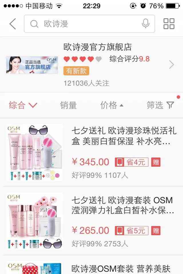經(jīng)過多日的考察,我決定先代理歐詩漫化妝品,一則他屬于品牌,現(xiàn)在化妝品都講究品牌調(diào)性,二則它屬于國產(chǎn)品牌,代理門檻低一些。