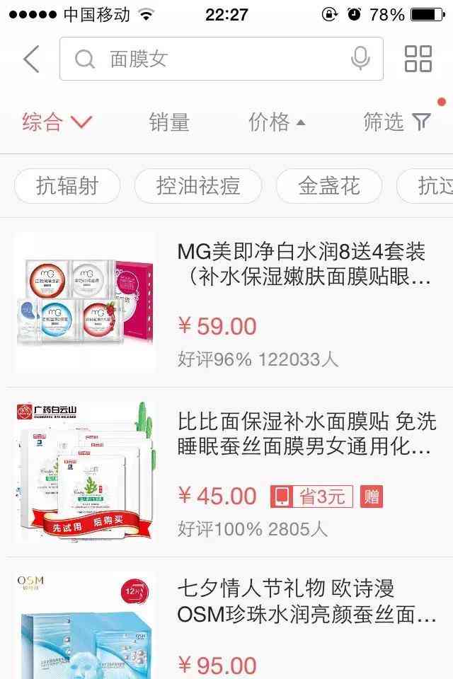 面膜的:補(bǔ)水面膜、面膜貼排.,面膜女第三,面膜第五。