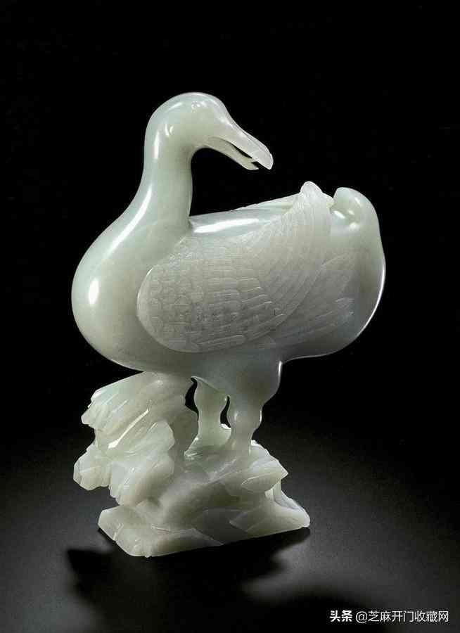 清十八世紀(jì)青白玉鴨子,尺寸:23.5厘米,估價:HKD 900,000 ~ 1,200,000,成交價: HKD 1,820,000