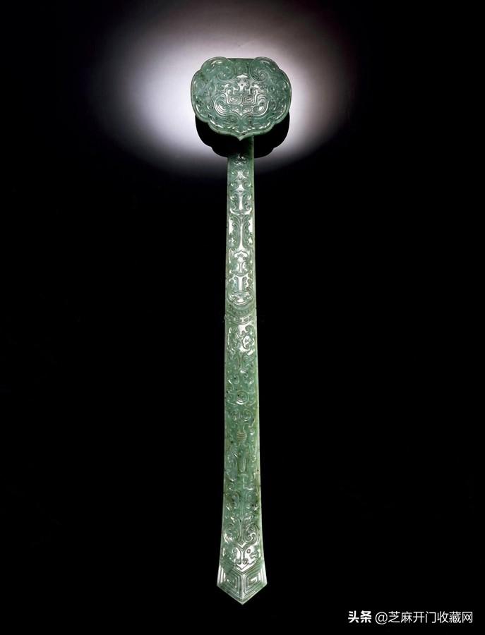 清乾隆碧玉雕仿古鳳紋如意,尺寸:長45.5厘米,估價:RMB 900,000 ~ 1,200,000,成交價: RMB 1,782,500