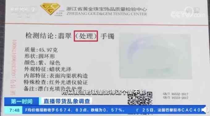 導讀: 黎女士在珠寶直播間花了1666元,購買了商家聲稱天然翡翠的手鐲,并且還配有證書,在鑒定結(jié)果一欄中,明確寫著“翡翠A貨”,...