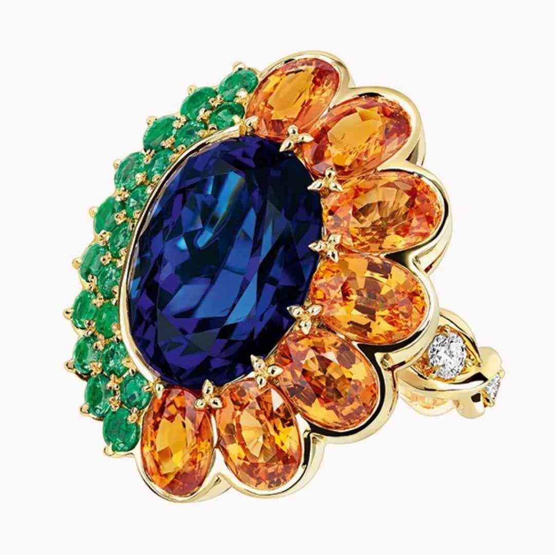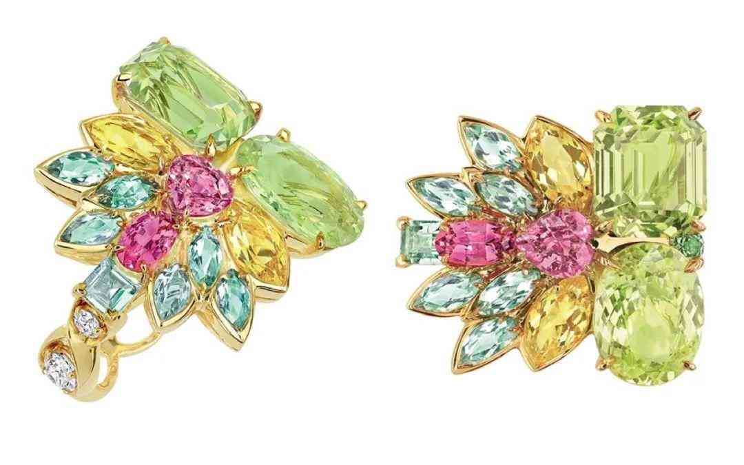 卡斯特蘭的設(shè)計是豐富而精彩的,她將各類寶石融于一體,撞色的色彩感很是驚艷,也有很強的視覺沖擊力,灌注著珠寶設(shè)計的艷彩流光的鮮活生命力。