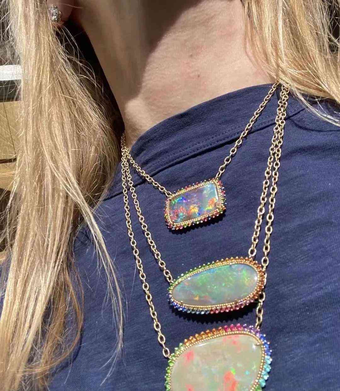 她佩戴的歐泊的出場頻率非常之高,而她的氣場能很輕松地駕馭她所設(shè)計的珠寶首飾,有一種相得益彰的美麗。