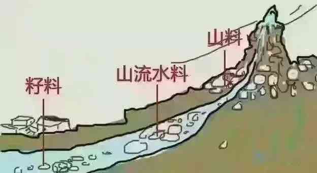 和田玉的產(chǎn)狀主要分為4種:山料、山流水、籽料、戈壁料。