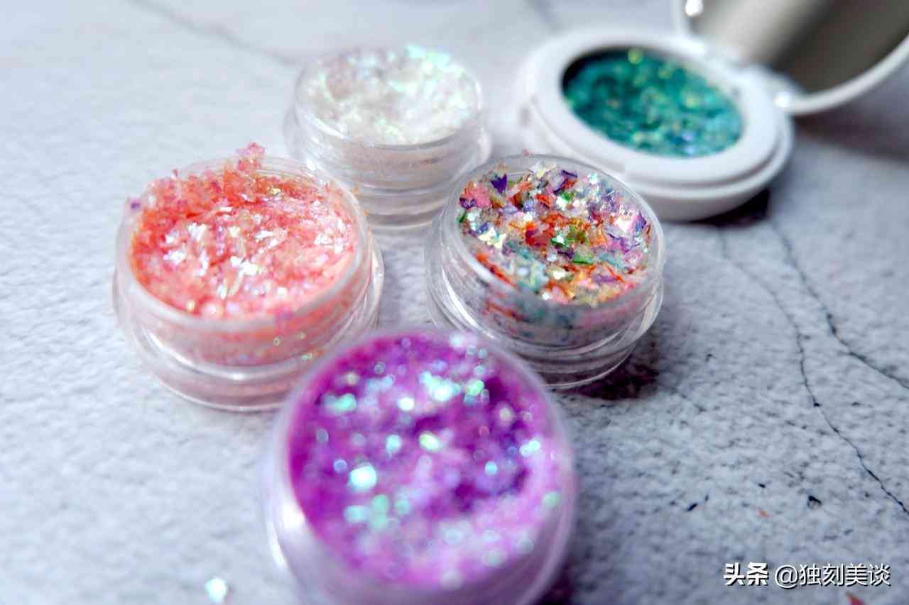 這種亮片可以很碎、很薄,所以蘸取的時(shí)候不必?fù)?dān)心量少,很可能都疊在一起了。