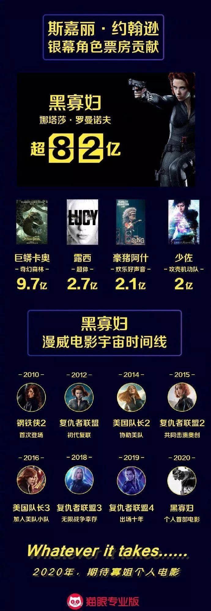 對(duì)于率先突破百億票房的斯嘉麗來說,“黑寡婦”這個(gè)稱呼知名度顯然更高。對(duì)于她來說,其票房貢獻(xiàn)也大都來自于漫威宇宙中的“黑寡婦”一角。