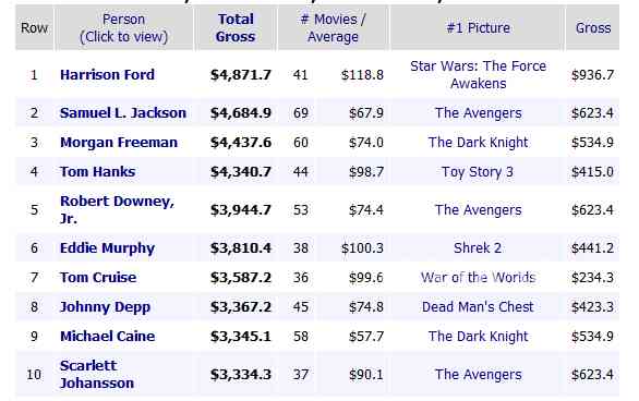 早在2016年,根據(jù)美國(guó)電影票房數(shù)據(jù)統(tǒng)計(jì)網(wǎng)站Box Office Mojo做出的排名,斯嘉麗成為美國(guó)電影史上最賣座的好萊塢女演員。