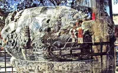 2004年5月27日,北京北海公園團城,元代“瀆山大玉海”前,20多位.專家組成了鑒定委員會,他們要解開瀆山大玉海的出身之謎,這個謎,已困擾世人700余年。瀆山大玉海,可儲酒30余石,相傳是元世祖忽必烈為犒賞三軍所制。它制成于1265年,高0.7米,重約3500公斤,略呈橢圓形,內(nèi)空。它是中國歷史上出現(xiàn)最早、重量最大的巨型玉雕,開了大件玉雕作品先河,是劃時代的藝術(shù)珍品。它的外部周身浮雕,如同波濤洶涌的大海,海龍海馬等十三種海獸出沒于驚濤駭浪間。海的激流漩渦,奇肆渾茫,海獸栩栩如生。