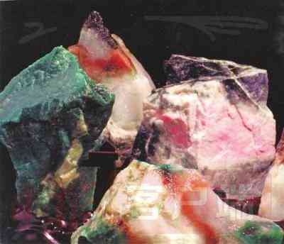 獨山玉脈主要分布于輝長巖體斷裂破碎帶內(nèi),大小千條以上,呈魚群狀產(chǎn)出。遙想6億年前,巖漿熱流像彩色魚群自由穿行在巖石裂隙中,凝固成條條玉脈,凝固成一種永恒。