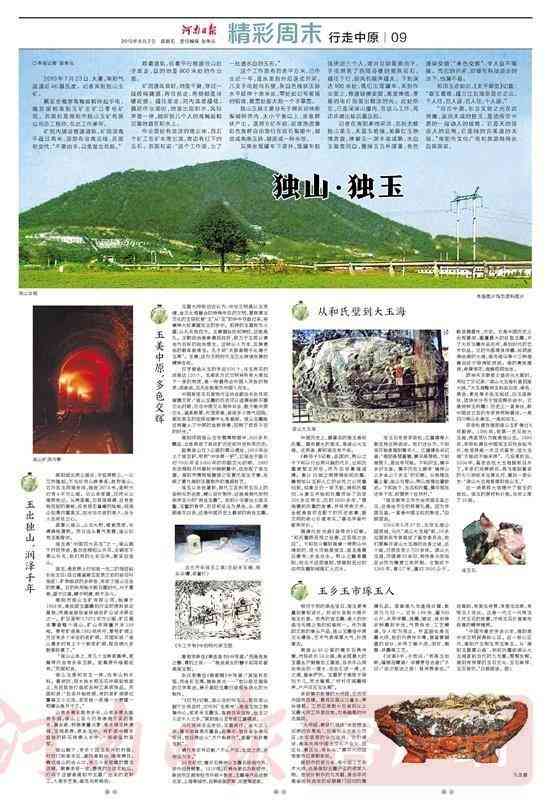 “《漢書》記載,獨山當(dāng)時叫玉山,現(xiàn)在獨山腳下沙崗店村,漢代叫‘玉街寺’,是獨玉加工銷售中心,家家采玉雕玉,客商往來如梭,治玉之人達千人之多?!蹦详柂毶接駥<医唤ㄕf。