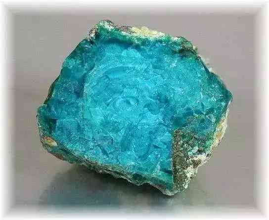 內(nèi)部結(jié)構(gòu)為通常呈塊狀或皮殼狀隱晶質(zhì)集合體。蠟狀光澤至玻璃光澤。摩氏硬度:5~6。密 度:2.76(+0.14,-0.36)g/cm3。折 射 率:點(diǎn)測(cè)法通常為1.61。