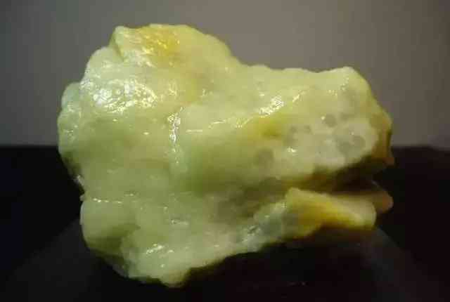 內(nèi)部結(jié)構(gòu)為晶質(zhì)集合體,致密塊狀,放大檢查為致密塊狀,可含有藍(lán)色、白色等斑點(diǎn)。玻璃光澤,塊狀呈油脂光澤。摩氏硬度:1~1.5。密度:2.65g/cm3 ~2.90 g/cm3。折 射 率:1.53~1.60。