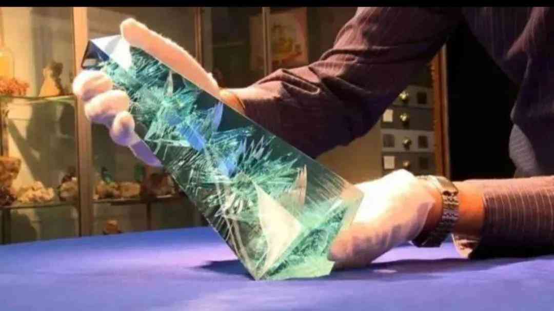此海藍寶石成品尺寸為95*75*75厘米,重為95000克拉,顏色如湛藍的大海一般清澈無比,凈度很高,通透性很足,如今的估價超過1000萬人民幣。