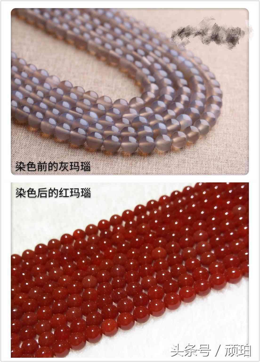 巴西紅瑪瑙,原本是灰色的,如上圖,為了迎合人們對(duì)紅色的偏愛,通過在染色劑中浸泡數(shù)星期,最后高溫烤色成紅色;