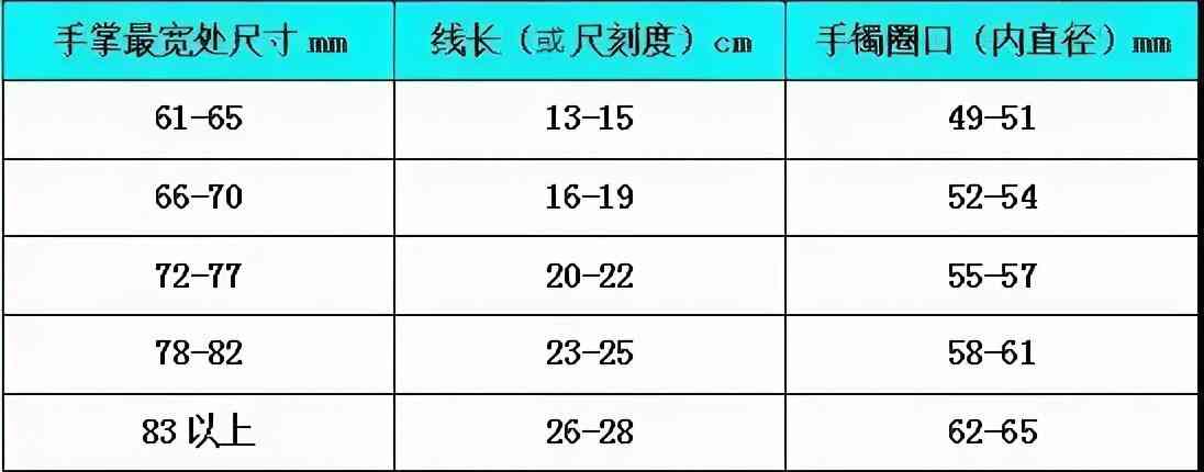 手鐲圈口尺寸測量方法(手鐲圈口尺寸對照表 測量法)
