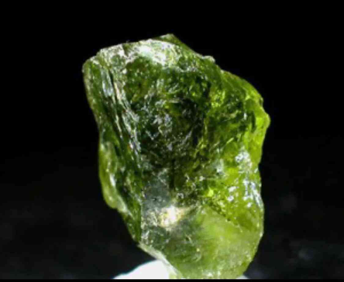 橄欖石是一種綠中帶黃,類似橄欖色的中低檔寶石,市場上最常見的是用有色玻璃制成的橄欖石仿冒品。兩者主要的區(qū)別是,橄欖石具有明顯的“雙影”,而玻璃沒有;橄欖石內(nèi)往往可見結(jié)晶質(zhì)包體,玻璃內(nèi)只含氣泡;橄欖石的比重3.5,硬度為7,比玻璃的比重(2.6)和硬度(6)都要大。