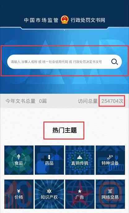 經(jīng)下載后顯示,文書網(wǎng)APP名稱為“處罰文書網(wǎng)”。青眼發(fā)現(xiàn),相較于文書網(wǎng)的網(wǎng)站,文書網(wǎng)的APP上僅有兩種搜索方式,即按“當(dāng)事人名稱或信用代碼或文書號(hào)”的高級(jí)搜索,和按八大主題的檢索方式。此外,和網(wǎng)站一樣的是,文書網(wǎng)APP上也顯示了今年文書總量以及訪問總量的次數(shù),截至1月13日10時(shí)已有254704次訪問。
