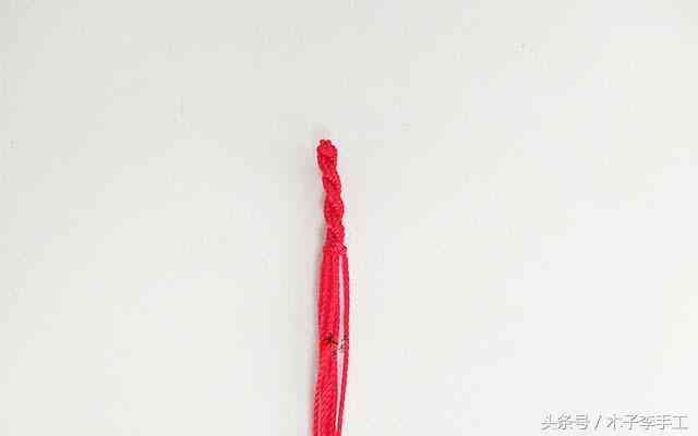 2、用這8根線編八股辮,做到合適手腕的長(zhǎng)度再用金剛結(jié)固定。