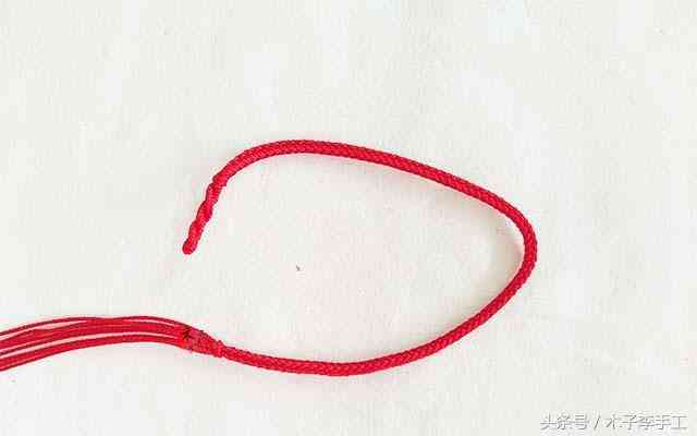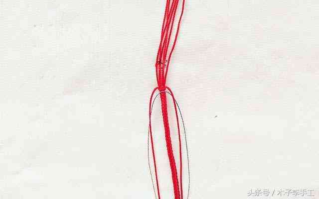 1、準(zhǔn)備4根線,居中擰繩做扣眼,用金剛結(jié)固定。