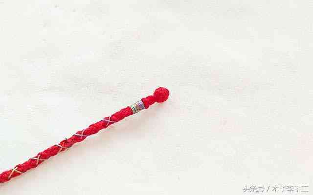 4、另取一根彩金線,包住第4步的線做一段0.5cm長(zhǎng)的繞線