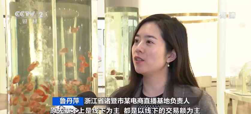 浙江省諸暨市某電商直播基地負(fù)責(zé)人 魯?shù)て迹涸然旧弦跃€下的交易額為主,今年線上線下基本上不相伯仲的狀態(tài),交易額各占50%左右。