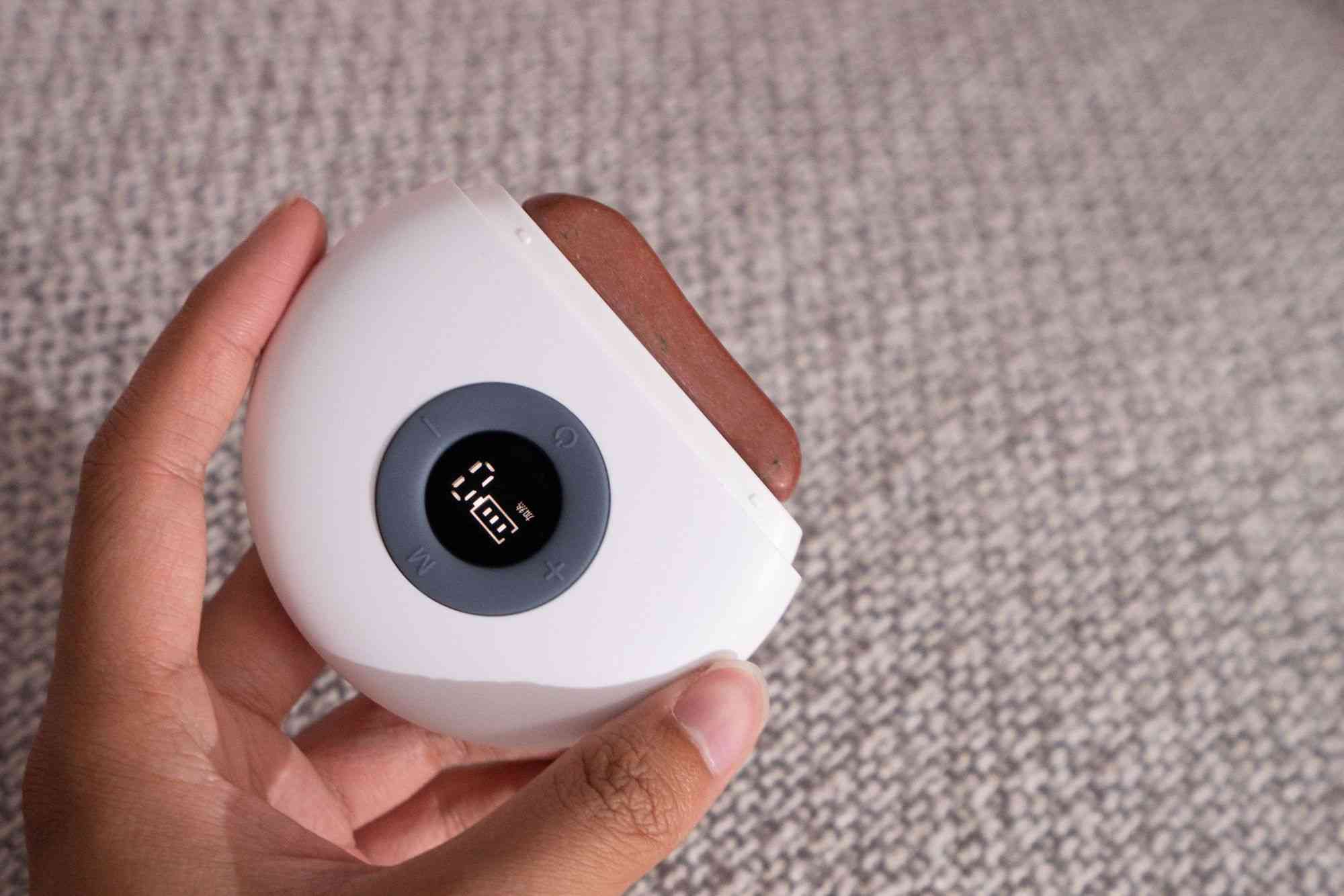 搭配贈送的艾草精油,我大概使用了10分鐘,加熱調(diào)到6檔,振動調(diào)到5檔,從一個方向刮拭,刮痧是不能來回刮拭的,很快就會出痧了,做完非常舒服,感覺身體很輕松。還記得.次在店里讓別人用牛角板刮痧,真的痛的要命,但是這款左點砭石按摩器不會痛,邊加熱邊振動,比單一的牛角板舒服太多了。