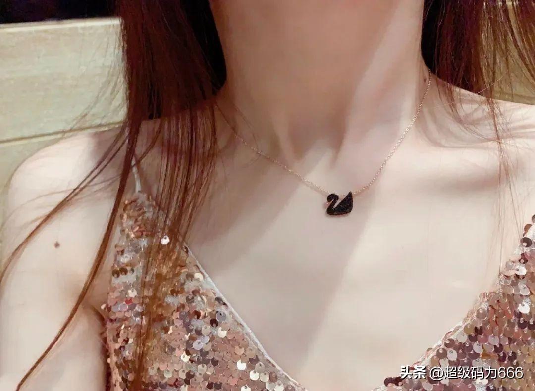 纖細(xì)的鏈條搭配黑天鵝,超顯膚白。