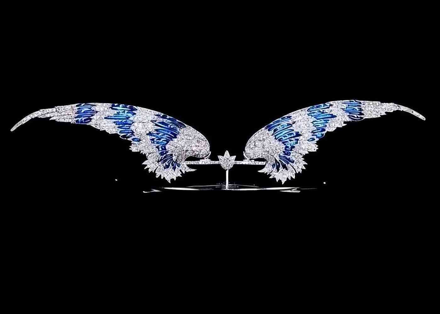 莫扎王太后肩上佩戴的一枚古董“羽翼”胸針,來自CHAUMET,鑲嵌了566顆鉆石以及708顆玫瑰切割鉆石,現(xiàn)今估價在275萬美元左右。它如翠鳥歇息在王太后的肩上。