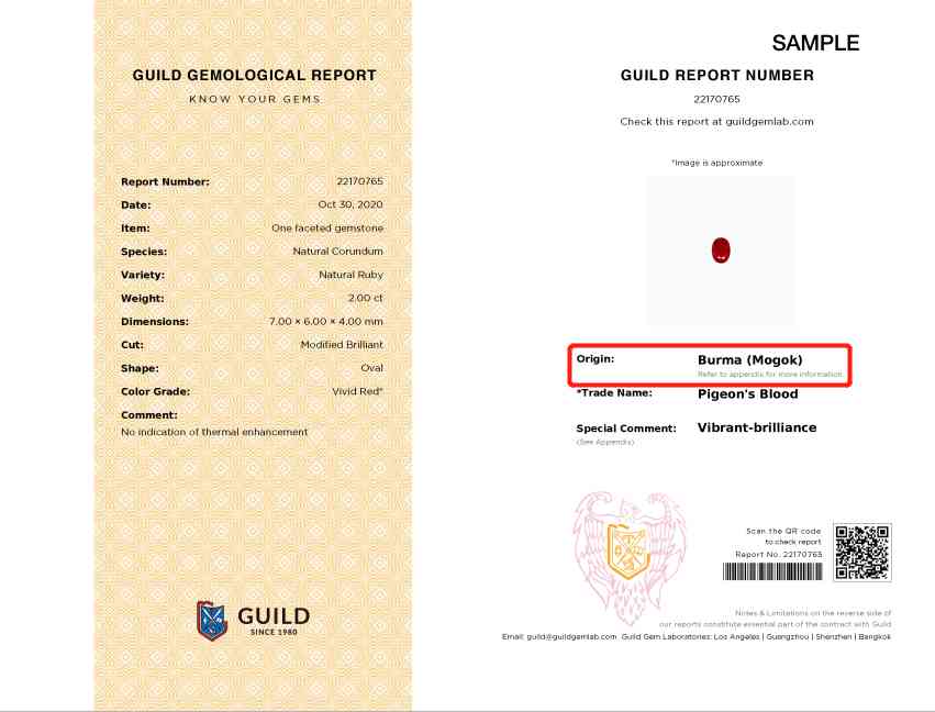 GUILD紅寶石緬甸小產(chǎn)地檢測報告(樣本)