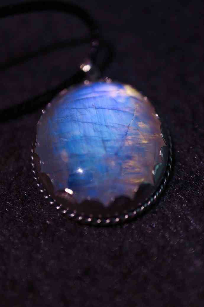 月光石被認(rèn)為與月亮女神有關(guān)系,在歐洲也曾經(jīng)用來作為宗教獻(xiàn)祭的寶石,被視為能夠帶來幸福長壽的寶石。月光石的月暈效應(yīng)有三種:白色光暈,彩虹光暈與藍(lán)色光暈。