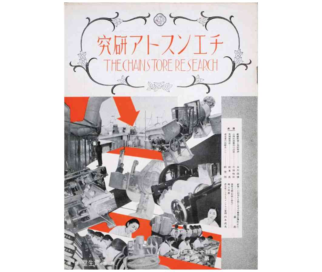 1936年資生堂在內(nèi)部期刊就使用非常大膽的蒙太奇,來展示企業(yè)的工業(yè)技術(shù)和女工,配合鮮艷的橙色箭頭,形成碎片化動(dòng)感,現(xiàn)在看著依然毫不過時(shí)。