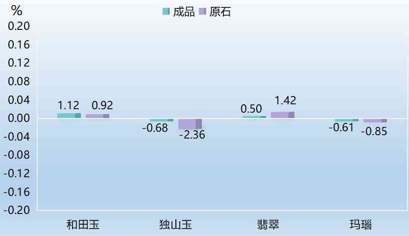 11月玉雕原石、成品細(xì)分品價(jià)格指數(shù)漲跌幅