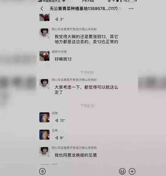 有人提到,貴陽許多地方都漲到了大碗12元,黔西距離貴陽較近,也應該與貴陽保持一致。高連紅表示贊同,“我覺得大碗還是要漲到12,其他地方都是這么賣的……”她在群里回復。